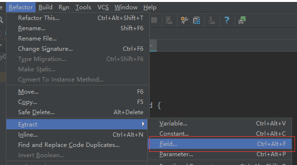 抽取成员变量的快捷键 Ctrl + Alt + F。