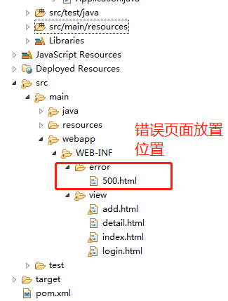 如果不配置spring.freemarker.template-loader-path,springboot会在src/main/resources中的templates中的error文件下下找错误渲染的页面。
