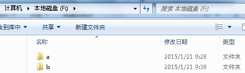 把一个文件夹内的所有文件拷贝的另一的文件夹,例如,在F盘中有a与b两个文件夹: