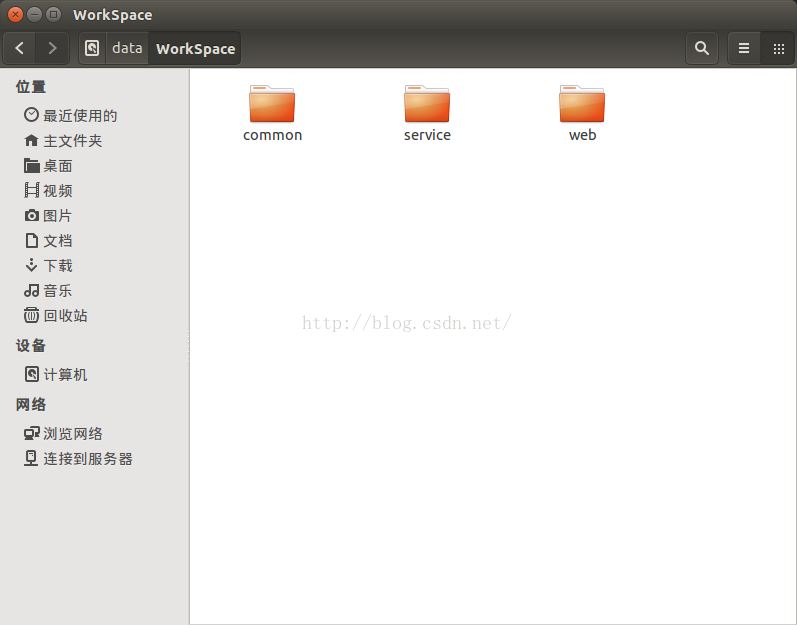 2.1 首先,从SVN上把common、service、web三个项目下载到本地的某个目录中,例如下载到名为WorkSpace的文件夹下: