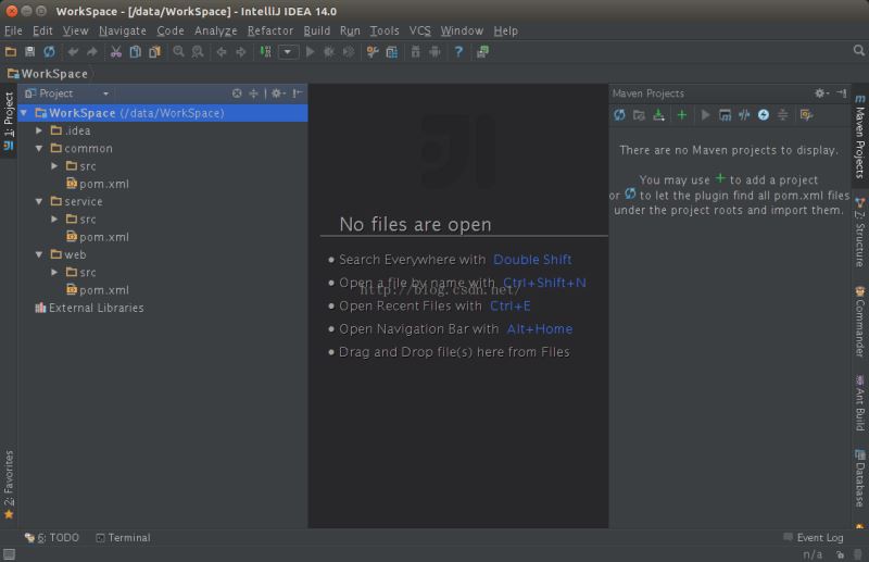 现在web项目需要引用common和service,如果IDEA分别单独打开common、service、web项目,那么在调试web项目的时候,就会遇到困难:web引用的common和service中的代码都是打包成jar的,无法调试。除非common和service安装的时候把源码也install到本地仓库,但是那样不方便,每次common和service更新都需要maven install操作后,web中引用的代码才会更新。
