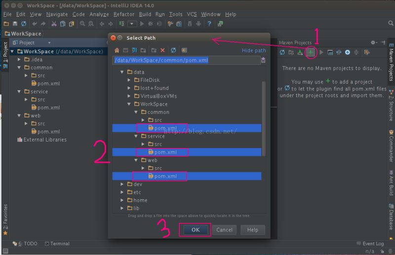 按住Ctrl多选pom.xml文件,然后点击OK按钮。