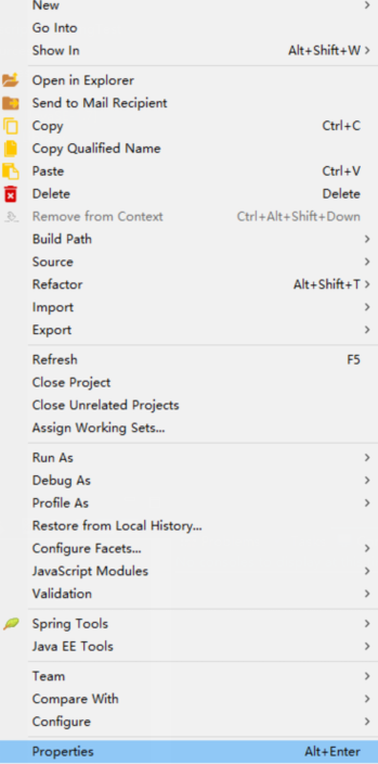 2、右击项目-->Properties