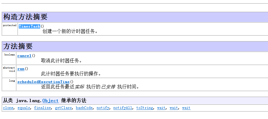 下面是TimerTask的API: