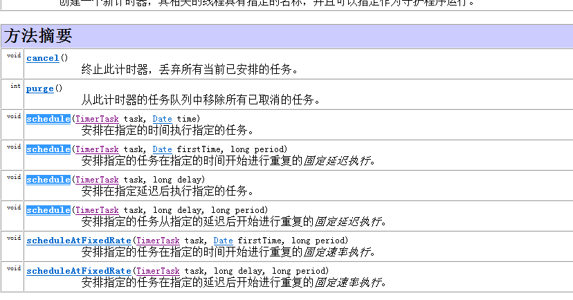 下面是Timer类的API