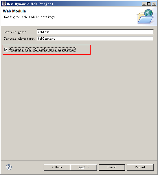 直到Web Module,勾选“Generate web.xml deployment descriptor”。