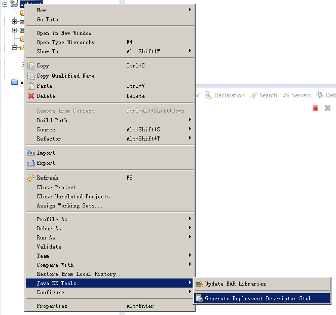 右击工程,选择Java EE Tools -> Generate Deployment Descriptor Stub。