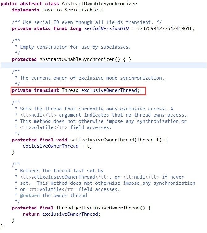 AbstractOwnableSynchronizer类中只定义了一个exclusiveOwnerThread变量,表示当前拥有的线程。