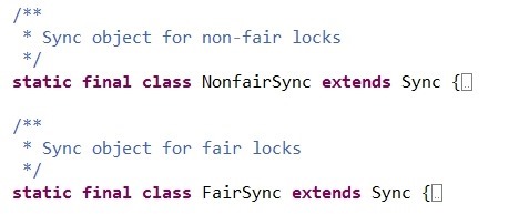 除了Sync类,ReentrantLock内部还定义了两个实现类。