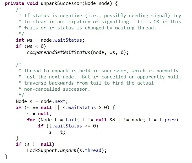 若队列的head不为空,且head的等待状态不为0,则调用unparkSuccessor()方法。