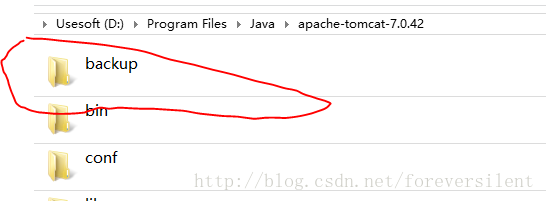 4.删除掉刚才的backup文件夹[backup所在位置根据第3步所说的,因为笔者使用的时tomcat安装目录所以就在目录下就直接发现了,但如果你用的是Use workspace metadata这个选项的话,你就在\workspace\.metadata\.plugins\org.eclipse.wst.server.core路径下可以看到里面有很多的文件,Eclipse就把项目发布到了这里,里面的目录结构和tomcat里面的差不多,总之把\workspace\.metadata\.plugins\org.eclipse.wst.server.core里面的文件全删除了就可以了]