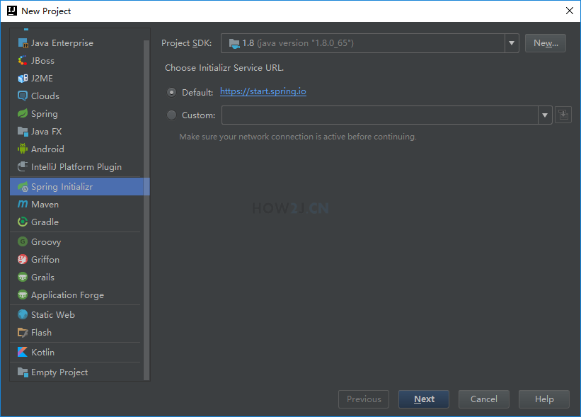 菜单 -> New -> Project -> Spring Initializer 然后点 Next