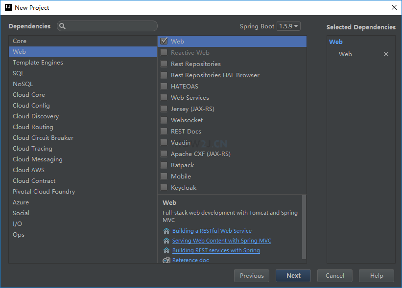 接着左边选择 Web, 右边只勾选 Web 即可,然后点击Next