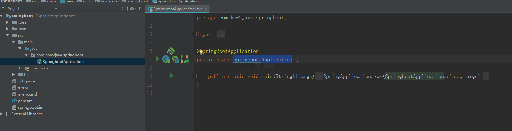 项目创建好之后,就自带一个SpringbootApplication, 其被@SpringBootApplication 所标记,表示这个是一个Springboot 应用