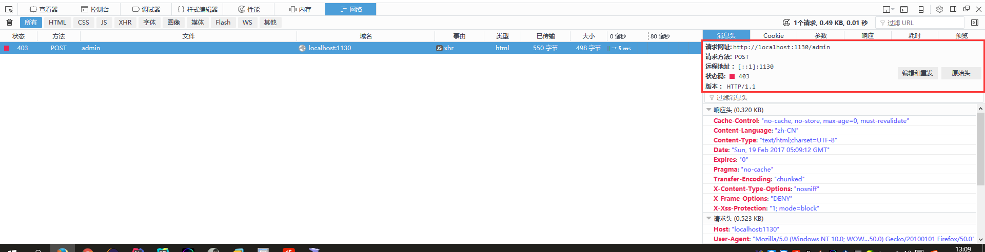因为现在没有了“user”权限,所以访问的时候抛出了异常,被拦截后重定向到了“/403”。