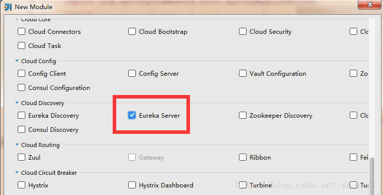(3)新建一个Eureka Server,Module,名为:eurekaserver