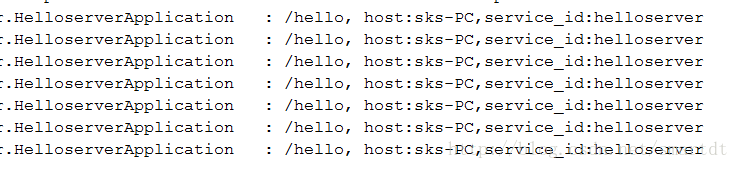 log.info("/hello, host:" + instance.getHost() + ",service_id:" + instance.getServiceId());