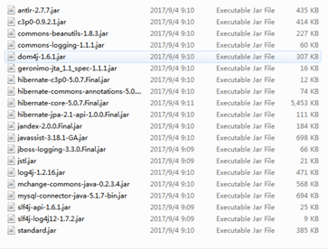 * hibernate-release-5.0.7.Final\lib\required\*.jar -- Hibernate框架需要的jar包