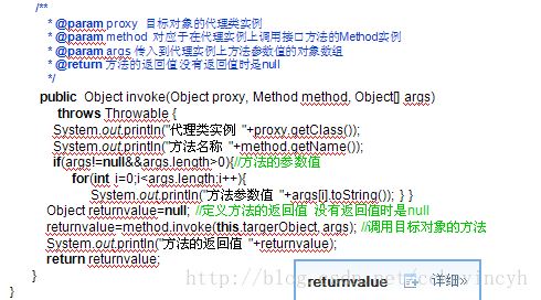 4、invoke方法中的三个参数可以访问目标类的被调用方法的API、被调用方法的参数、被调用方法的返回类型。