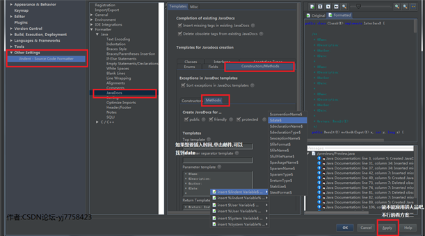 1.安装Jindent插件,好处是自动生成模板,但是很可惜本人安装失败,设置好以后不知道为什么无法Apply,可能是我的版本问题,失败的同学请看方案二.