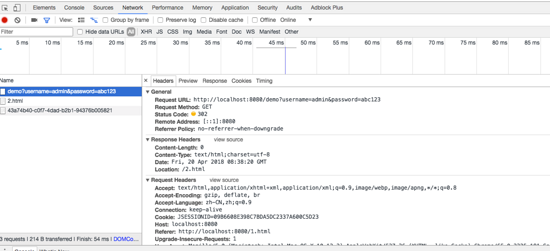 打开 Chrome 的开发者工具,能够看到发送请求的详细情况: