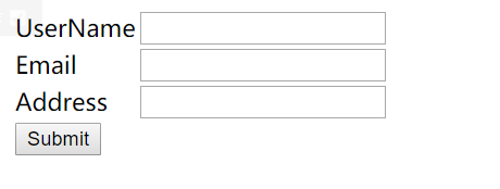 <%@ page contentType="text/html;charset=UTF-8" language="java" %> <html> <head> <title>Input</title> </head> <body> <table> <form action="input.action" method="post"> <tr> <td>UserName</td> <td><input type="text" name="userName"></td> </tr> <tr> <td>Email</td> <td><input type="text" name="email"></td> </tr> <tr> <td>Address</td> <td><input type="text" name="address"></td> </tr> <tr> <td><input type="submit" value="Submit"></td> </tr> </form> </table> </body> </html>