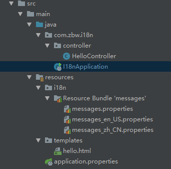 先创建一个基本的Spring-Boot+thymeleaf+国际化信息(message.properties)项目,如果有需要可以从我的Github下载。