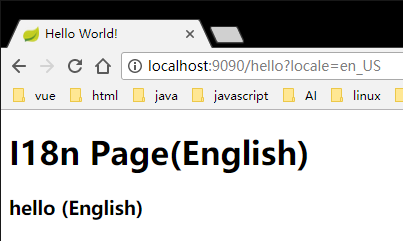 然后我们在浏览器中输入http://localhost:9090/hello?locale=en_US,语言就会切到英文。同样的如果url后参数设置为locale=zh_CH,语言就会切到中文。