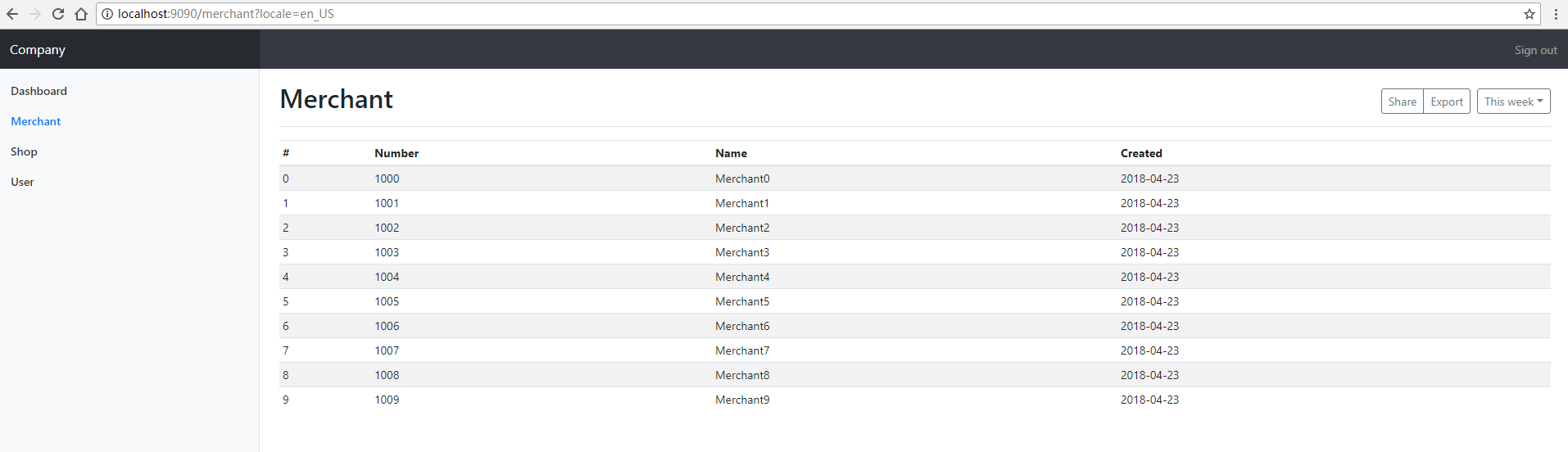 同时新增两个html文件分别是'dashboard.html'和'merchant.html',里面只有一个'hello'的国际化信息和用于区分的标题。
