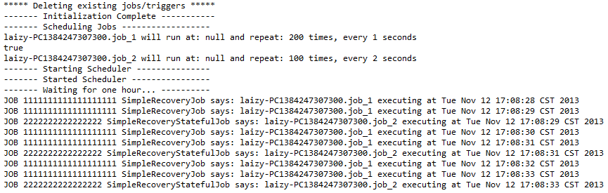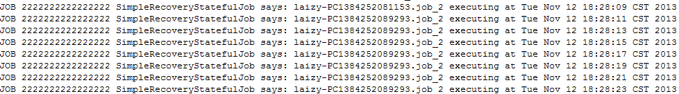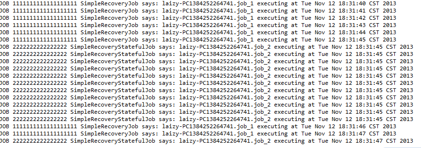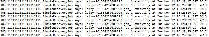 System.out.println("JOB 1111111111111111111 SimpleRecoveryJob says: " + jobName + " executing at " + new Date());