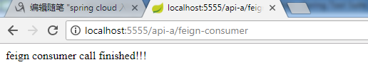 成功访问到了feign-consumer的服务接口--feign-consonsumer。