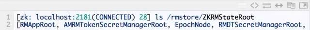 由于这些状态信息的数据量都不是很大,因此 Hadoop 官方建议基于 ZooKeeper 来实现状态信息的存储。在 ZooKeepr 上,ResourceManager 的状态信息都被存储在 /rmstore 这个根节点下面。