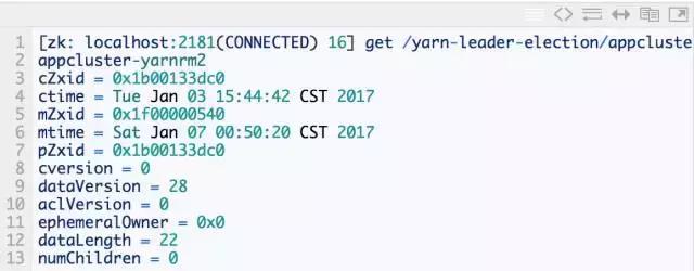 在 ZooKeeper 上会有一个/yarn-leader-election/appcluster-yarn的锁节点,所有的 ResourceManager 在启动的时候,都会去竞争写一个Lock子节点:/yarn-leader-election/appcluster-yarn/ActiveBreadCrumb,该节点是临时节点。