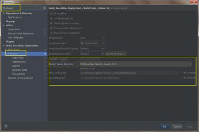 7.修改IDEA的Maven设置,Maven默认的本地仓库会保存在C盘,为了方便以后使用,尽量修改本地仓库的位置,因为这是框架整合,所以具体的修改方式在这里不多做说明。快捷键ctrl+alt+s,在搜索框中搜索Maven,如下
