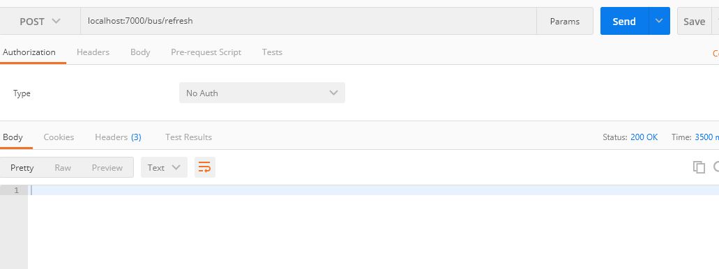 接下来,我们我们用refresh刷新配置服务端配置,通知两个client去更新内存中的配置信息。用postman发送localhost:7000/bus/refresh,如下: