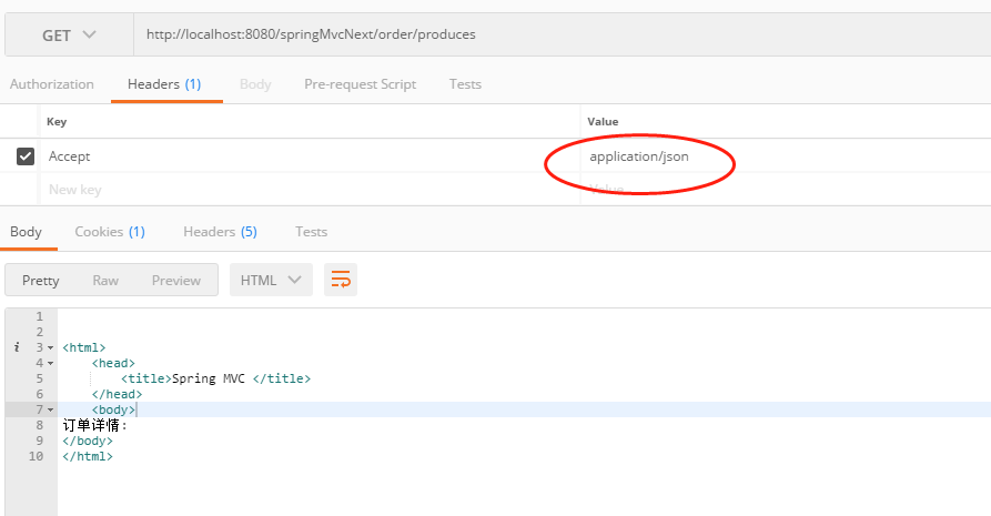 示例5限定请求参数必须包含参数orderNumber,如果不包含名为orderNumber的参数,则拒绝访问:访问路径:http://localhost:8080/springMvcNext/order/detail2?orderNumber=12