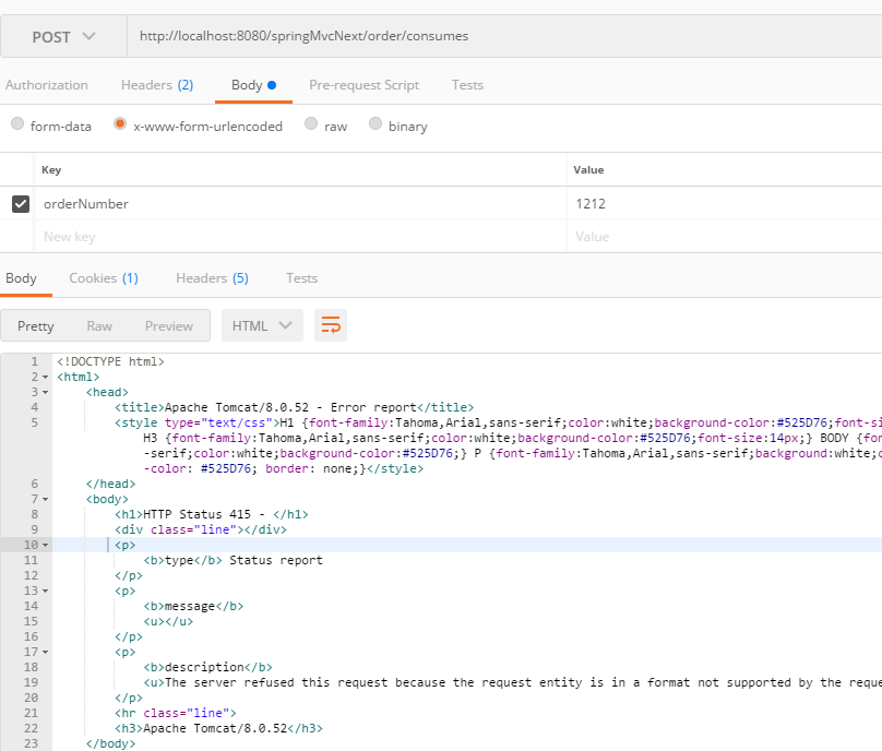设置参数格式为x-form-urlencoded,返回错误,Http Status 415