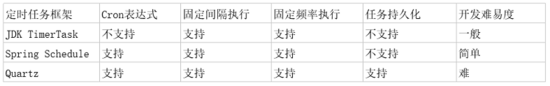 我们拿常用的几种定时任务框架做一个比较: