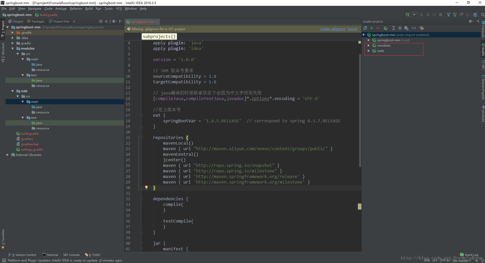 springboot用以进行web项目开发的便捷性,本文不再赘述,主要是想将工作中基于springboot与gradle的多模块项目的构建经验进行总结与归纳。