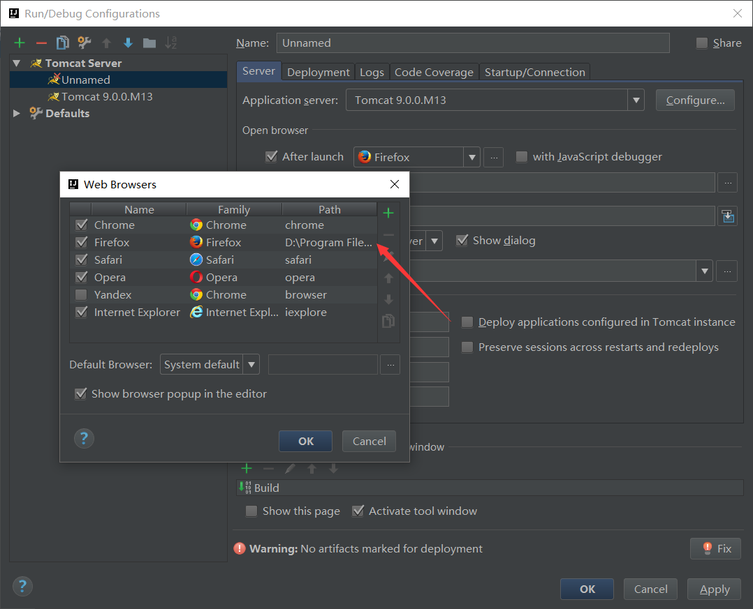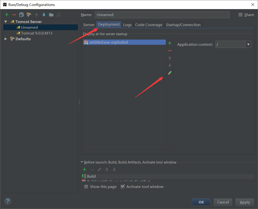 标签由Server跳到Deploment,点击小铅笔一样的图标对artifacts进行配置