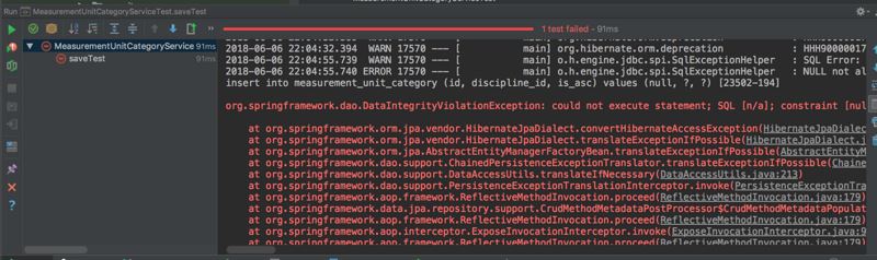Caused by: org.h2.jdbc.JdbcSQLException: NULL not allowed for column "DISCIPLINE_ID"; SQL statement:
