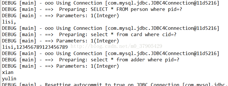 System.out.println(p.getPname()+","+p.getCard().getCnum());//此处是发出person信息和身份信息的查询;