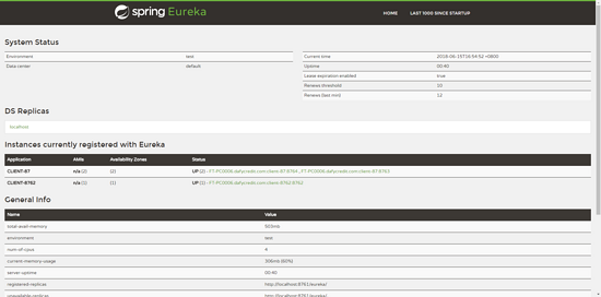 ③、打开EurekaServer的配置页面(http://localhost:8761/),如下: