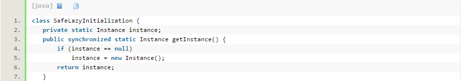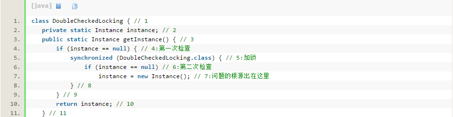 但是对整个方法进行同步开销太大,人们想出了双重检查锁定: