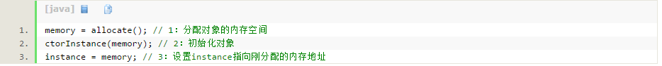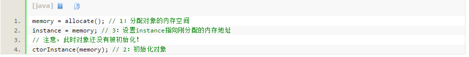 其实是先执行1分配内存,然后再初始化对象和设置instance.然后这里存在重排,2和3的顺序可能被调换: