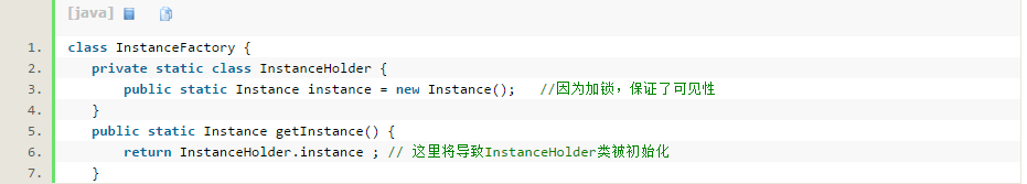 2.利用基于类初始化的解决方案 :JVM在类的初始化阶段(即在Class被加载后,且被线程使用之前),会执行类的初始化。在