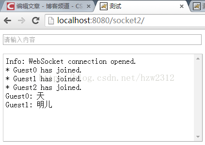程序截图,Guest0用户发送信息的信息,在后台进行了判断只发送给自己: