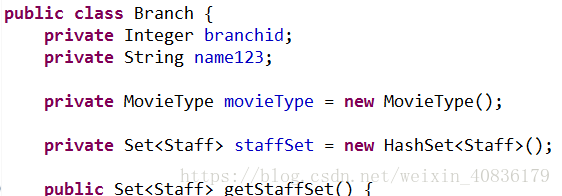 当然了 Branch 的实体类也要加一个 Staff 的set集合,用set集合的目的是为了防止重复: