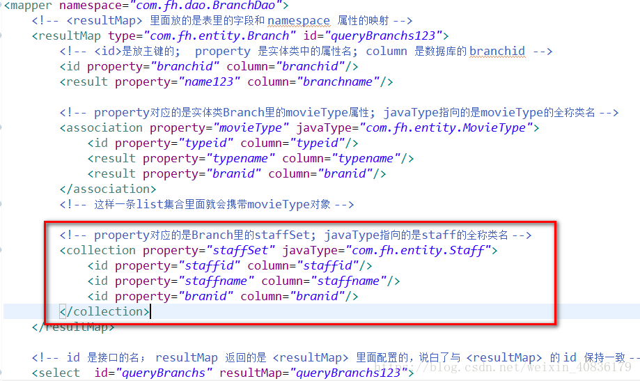 然后在Mapper里面也要加一个新的标签 <collection> (如下):