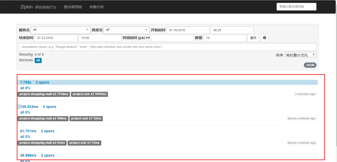 这时候zipkin可以把链路调用整个过程给升级起来,只需要到一个地方去查找,就可以知道哪一步出错。